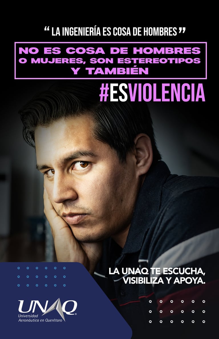 En el año 2023, en colaboración con la Universidad Aeronáutica de Querétaro (UNAQ), desarrollamos una campaña integral sobre violencia de género. Investigamos la problemática, creamos un concepto estratégico, realizamos sesiones fotográficas y diseñamos una comunicación visual impactante para generar conciencia y acción.